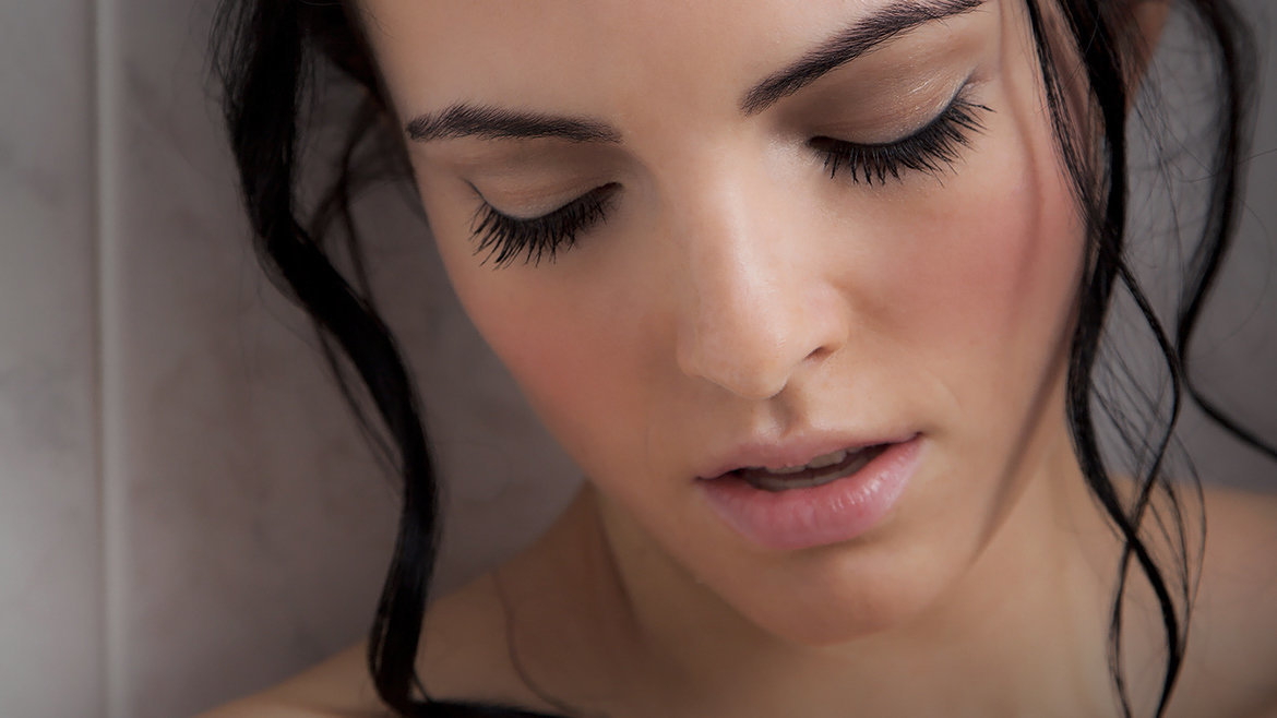 At just under eleven minutes, Alis Locanta’s “122 Fahrenheit” is relatively short. But, thanks to a simple, unobtrusive, style and the breathtaking beauty of its star — Sapphira A — the film is a rich and rewarding experience despite its comparative brevity. In the opening moments Sapphira whets the appetite as she stands in front of a wall of windows in a lace bodysuit. The film then cuts to Sapphira, totally nude, as she relaxes in a bathtub filled with warm, clear water. Perspective shifts from intimate close-ups — including several lingering facial portraits that are nothing less than gorgeous — and an overhead shot — with a nod to Alfred Hitchcock, minus the sinister element — looking down on the full length of Sapphira’s exquisite body. As one might expect — and certainly hope —Sapphira eventually gets bored with her relaxing soak and decides to add some sexual steam to the situation. She caresses her breasts and begins to stroke and probe her submerged pussy. As her ardor escalates, and her moans begin to echo against the tiles, she pulls the plug and drains the water. Then, as her erotic destination grows ever nearer, she rises from the tub, takes a seat on its edge, and fingers herself to vigorous and gratifying climax. In “122 Fahrenheit” the water is the perfect temperature, the mood is intimate and sultry, and Sapphira A is the embodiment of stunning, steamy perfection.