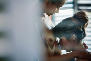 Stunning blonde Kelly Collins looks sensational in high heels and white lace lingerie. Smiling flirtatiously, she reclines on her glamorous swing bed, going face down for a breathtaking rear view of her sexy ass. She unhooks her bra to bare her perfect breasts, kicks off her shoes, then peels off her panties, revealing her plump-lipped pussy which is crowned by a neatly trimmed bush. Moving sensuously, the slender boudoir beauty’s body language is sweetly seductive.