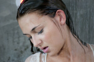 The rising sun of morning fills a bedroom with soft, diffused light. A platinum blonde — Jessie Jazz, making her debut appearance in a Sexart HD erotic movie — lounges on the white sheets of her bed wearing a black lingerie ensemble. Perhaps inspired by dreams she had during the night, Jessie begins to caress her shapely body slowly, lovingly. After removing her bra she applies drops of oil to her skin and strokes it across her torso. When she’s removed her thong panties she applies still more oil to her body. Jessie Jazz is clearly enjoying this sensual ritual, and takes her time savoring the touch of her own hands, the feeling of her slick skin, and the heat that’s building inside her. Director Andrej Lupin lets the scene unfold at its own leisurely pace. His camera glides in close, next to his star on those soft sheets, and then soars overhead for a bird’s eye view of an undeniably beautiful body in impassioned motion. Jessie Jazz teases herself, using both hands to stroke and squeeze her pussy and caress and cradle her breasts. After penetrating herself with two insistent fingers orgasm approaches, accelerates, and overtakes her. She relaxes onto the mattress, and even as her ecstasy subsides her fingers remain at work, and “Care” reaches its conclusion with a subtle suggestion of pleasures yet to come.