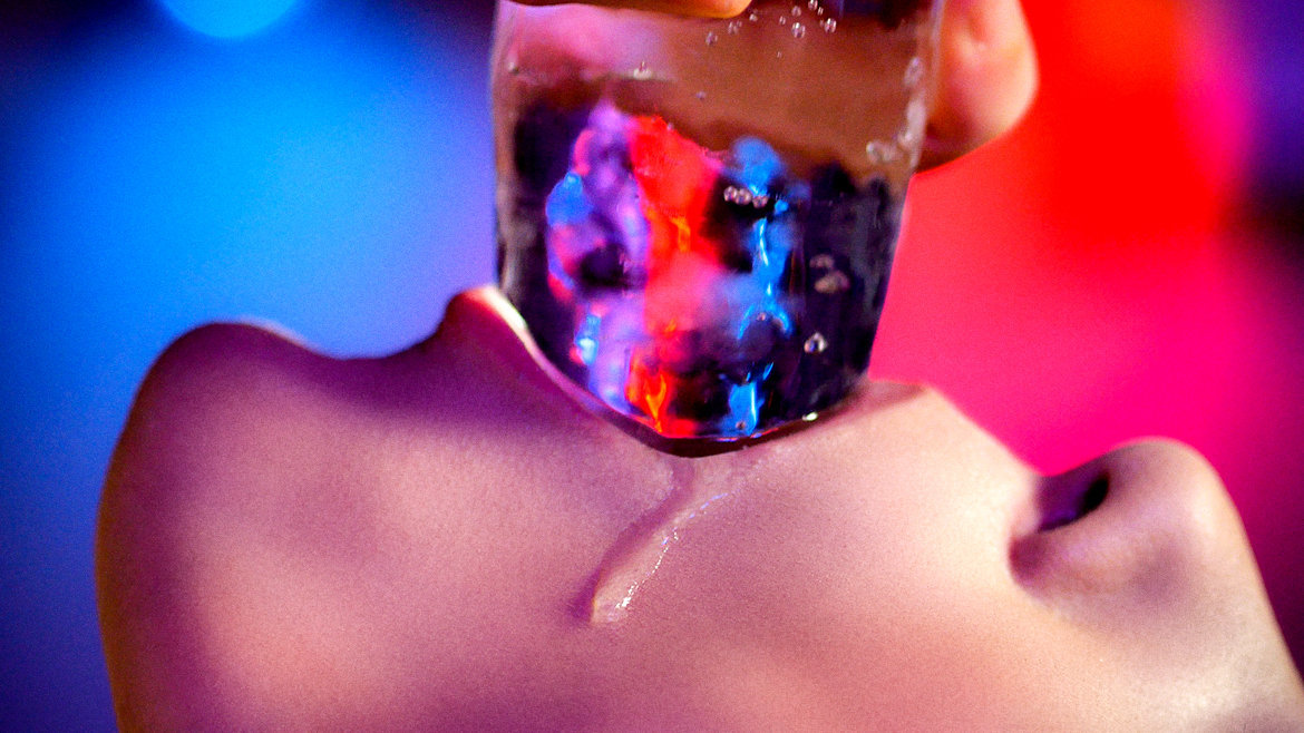Sexy. smoky-eyed Latvian blonde Sigy Black is single and works as a hospital nurse. Every night before she sleeps, she relaxes with a vibrator – but on this occasion, she will try anal stimulation for the first time. Nervous that it may hurt at first, she opts to use an ice dildo to soothe her tight, sensitive asshole and increase the pleasure. The frozen toy is huge to start with, so she begins by running it over her beautiful, lingerie-clad body, melting the surface. Next, she pumps it in and out of her mouth, water trickling out down her cheeks as her lips stretch around the girth. She goes down on it from above, drooling as she shapes the head to a rounded point. She works it in between her beautiful breasts then bares them, cupping her globes and teasing her stiff nipples. On all fours, she removes her panties and rubs her ice-pole over her butt cheeks, moving it into her crack and slit. The ice continues to melt and, when she is sure she can take it in her pussy with no problem, she probes her butthole with the very tip. Still finding it too big, she sucks on it then plunges it in her pussy, engulfing and melting it until she is able to slip it in her ass. It takes a few attempts, switching between her two holes each time, but, at last – after withdrawing it from her pussy accompanied by a wet gush – she is able to take it in deep, moaning as it penetrates and opens up her tighter hole. Within just minutes she is on the brink of orgasm, body trembling, and she moans with pleasure as she cums. Lying back on her kitchen counter, she runs the remaining ice over her belly and breasts, then sucks on it sensually as the picture fades.