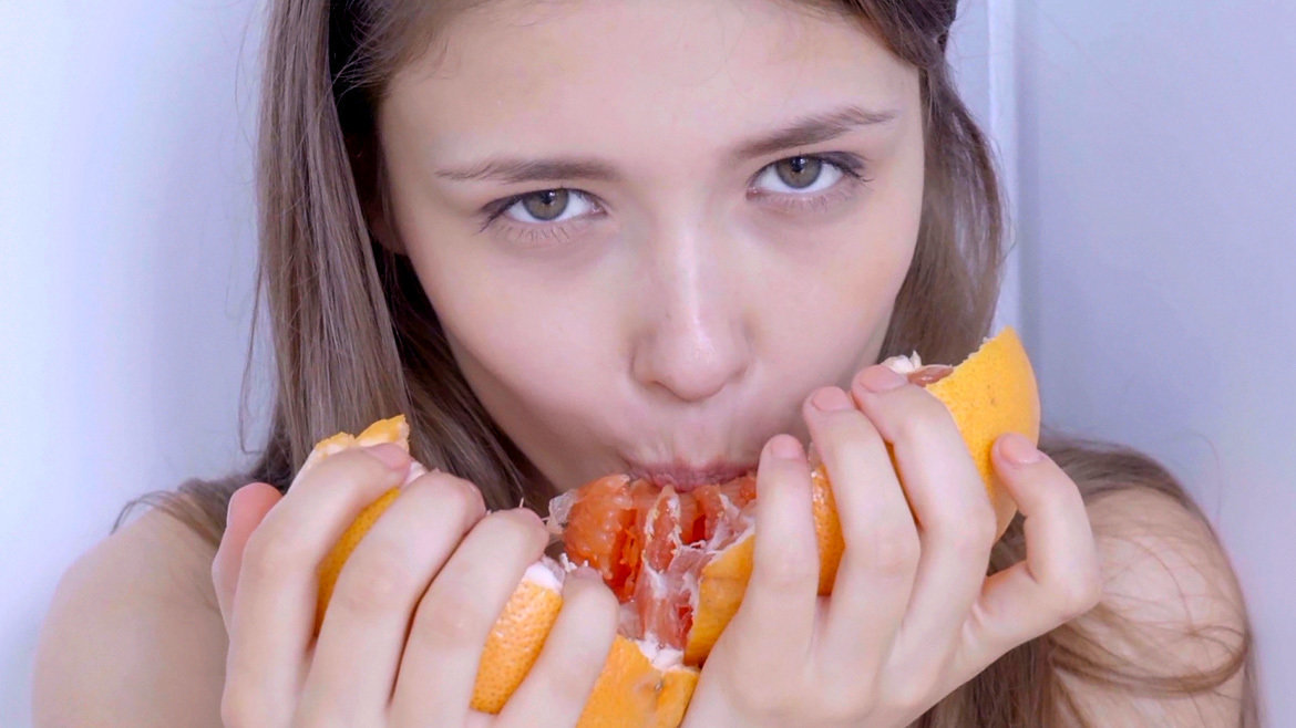 When super sexy Ukrainian babe Mila Azul wakes up she smiles, and immediately stretches her slender body to show off her magnificent, large breasts and shaved pussy. Who knows if her dreams have anything to do with it, but her body language says that she’s woken up in a highly aroused mood, her hands moving sensually all over her body. The gorgeous sex kitten relocates to the kitchen, where she sits on the counter and uses a selection of fresh fruit in her sex play, bouncing cherries off her breasts and trailing them against her labia, before tearing open a grapefruit and rubbing its sticky, succulent flesh all over her own. She’s so sticky she has to rinse off, and in the shower things get really hot and wet…