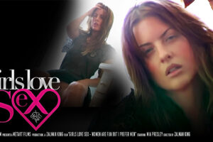 Ayza, a petite, slim babe with long black hair, is in bed, playing with golden chains. She has draped them over her naked body and is stroking them over her smooth curves, and the camera zooms in for a close-up as she uses them to tease her perfect breasts and stiff nipples. She licks and sucks on the links and drags them slowly over her shaved pussy, feeling as much as hearing the jingle and rattle as they move against her tender folds. She works a handful against her slit, her breathing heavy as they add another dimension to her self-pleasure. Half-turning onto her side, she grinds against the links. While her free hand caresses her breasts, her fingertips circle and strum the chain and her clit beneath it. As she gets on all fours, pulling the chain tight into her ass crack, her fingers work furiously in her slit. Then, on her back again, she builds to a climax, fingertips a blur as her back arches and she humps and bucks her ass clear of the bed. As she cums, she lets out little squeals of pleasure, muffled by a pillow. Finally satisfied, she lies back, her breathing heavy as her hands caress her naked skin.