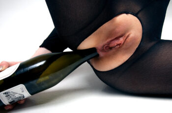 April may look demure and innocent in her cute floral summer dress and flat-heeled sandals, fresh-faced and with her waist-length, dark hair tied back in a ponytail. However, she’s just visited a sex shop. Back at home, she plays with her new purchases. Now wearing a net body-stocking, ripped at the crotch, and a black thong, she runs a small, black and silver leather paddle over her slender body, teasing every inch from her breasts to her toes. She sucks on it, then begins to spank herself, her skin turning a hot, rosy pink where the paddle strikes. Long legs splayed wide, she pulls her panties tight into her shaved slit, sighing and moaning as she saws the crotch against her clit. Next, she pulls it aside and begins to masturbate, frigging her clit, stretching her pussy lips tight, and sliding two fingers into her wet hole. She pulls the top of her bodysuit sideways to reveal gorgeous, medium-sized breasts and stiff nipples with discreet piercings. Raising her legs, she begins to paddle her ass cheeks, while continuing to finger her snatch hard and fast. Then she rolls over on all fours, head down and ass in the air, reaching down between her parted thighs, her fingers a blur. Her moans become more urgent as she lays spanks on her beautiful, firm ass. Sitting up, her long hair loose and wild, she masturbates hard, spanking herself all over her body, even taking gentle swats at her face, and sucking on the paddle. At last she cums, bucking her hips as she moans and whimpers with pleasure. Then, she caresses her curves with her hands and the paddle, before drifting off to sleep, satisfied for the moment at least…