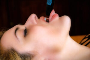 There’s a special delivery for Milla – a mysterious box, containing a note and a pair of black panties. She puts them on, and then returns to watching something on her tablet, but her thoughts soon stray to the sexy gift. Parting her thighs, she wriggles a hand inside the panties, then slides them off and strokes them against her face as she begins to finger her pussy. She grows increasingly horny, pulling off her dress and bra and rubbing the panties against her pussy. Legs wide apart, she rocks her hips as she masturbates, then turns onto her knees, thrusting back against her probing fingers. They slide rapidly up and down her slippery slot, and she lies back, penetrating herself with her sticky fingers, playing with the panties as she does so. When she’s done, she seals them back in their package – it seems the gift is for someone else after all…