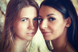 Cute blonde Lovita Fate enjoys a picnic on the lawn with her sexy brunette girlfriend Betzz, as episode three of Sandra Shine’s erotic lesbian series “The Residence” begins. They’re being watched by voluptuous housekeeper Kira Queen, who makes sizzling eye contact with Lovita; when Betzz falls asleep, Lovita dashes up to the terrace, grabs Kira’s hand and leads her to her hotel bedroom. Pushing Kira against the wall, Lovita pulls off her bra and lavishes attention on her beautiful big breasts. She sucks Kira’s nipples voraciously before kissing her way down, removing her panties too and starting to lick her shaved pussy. Kira moans and gasps as Lovita’s talented tongue and fingers drive her wild. Now Lovita takes off her own panties and perches on the bed, ready for Kira to devour her. After some passionate oral they switch again, and Lovita licks the raven-haired beauty to an intense orgasm. She squats over Kira’s face and rides to her own climax, both of them thrilled by their illicit encounter.
